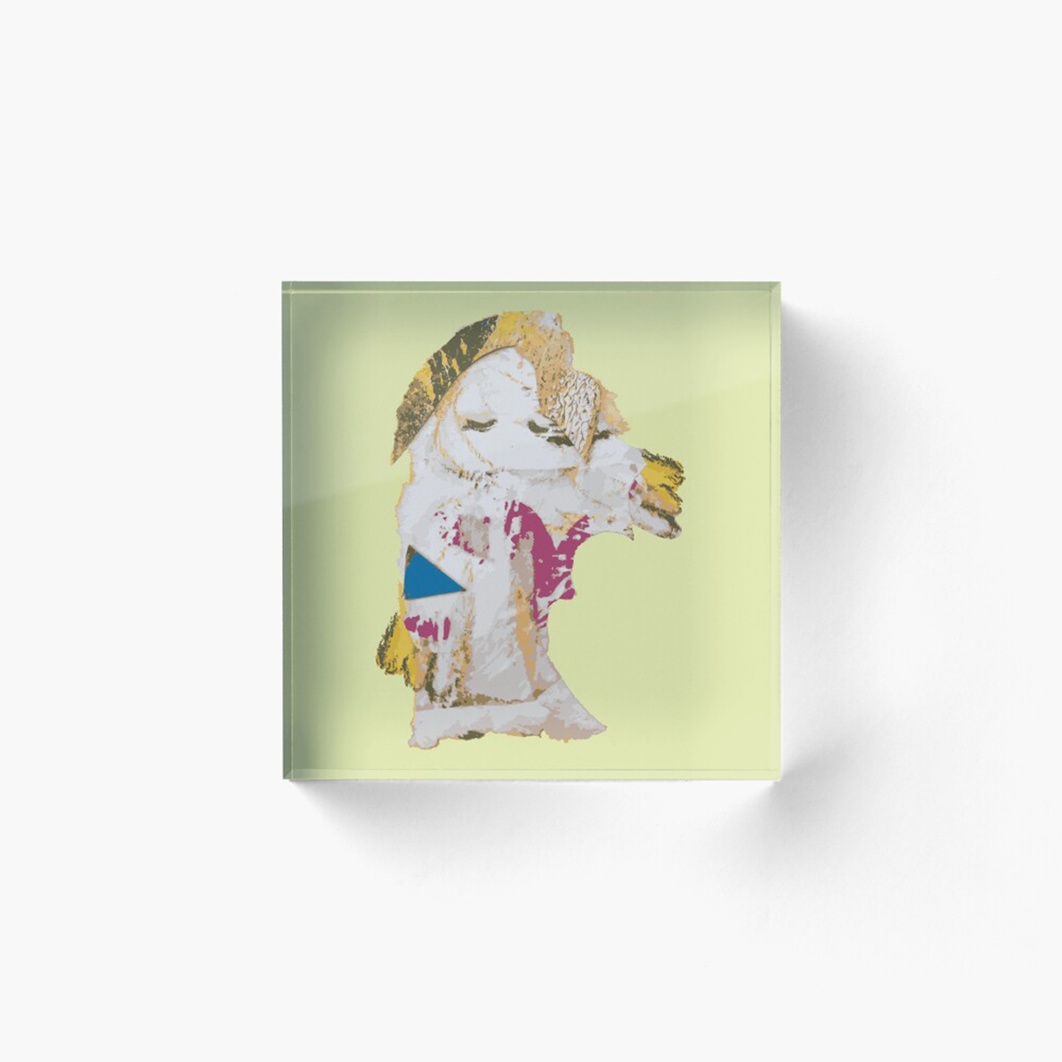 Eingeschüchert ist ein zartes, eigenwilliges Wesen in warmem Weiß mit gelb betonten Pfoten – traumtanzend - für Home, Kidswear & Stationery