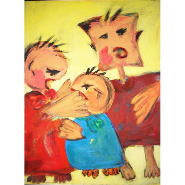 A large acrylic painting that – painted in bright colors in neo-expressionist style and figurative gestural – enlivens and enriches any space.