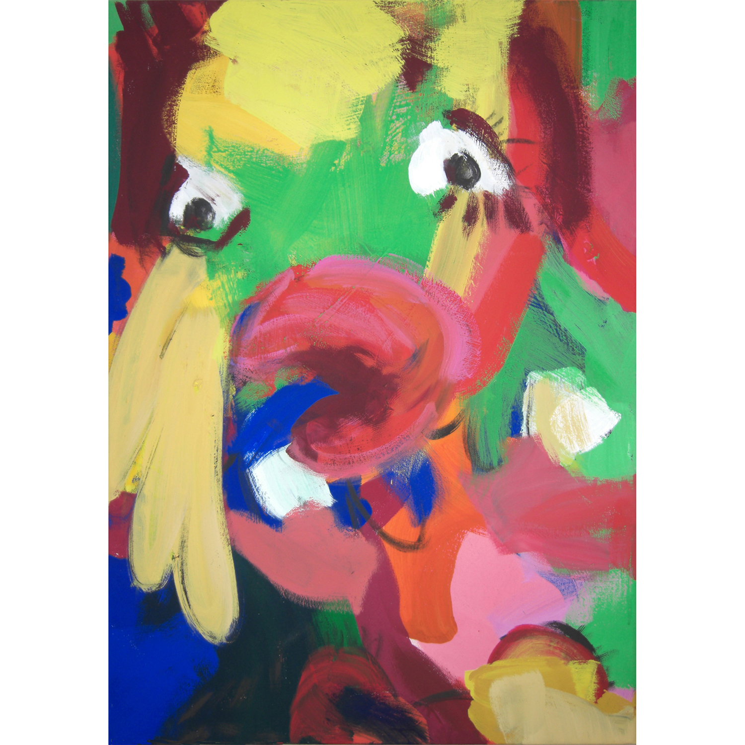 Ein kleinformatiges Acrylbild (acylic paint), das – in strahlenden Farben in neo-expressionistischem Stil und figurativ gestisch gemalt – jeden Raum belebt und bereichert.