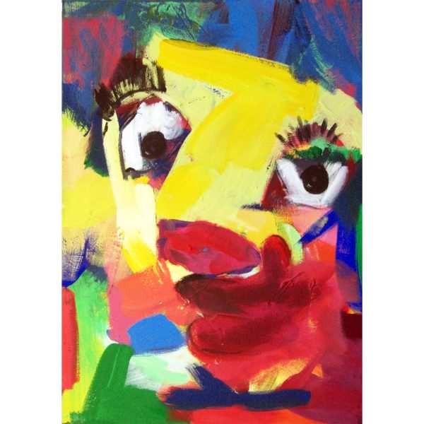 Ein kleinformatiges Acrylbild (acylic paint), das – in strahlenden Farben in neo-expressionistischem Stil und figurativ gestisch gemalt – jeden Raum belebt und bereichert.