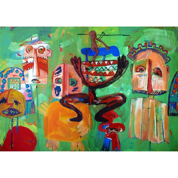A large acrylic painting that – painted in bright colors in neo-expressionist style and figurative gestural – enlivens and enriches any space.