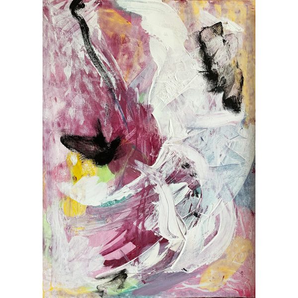 Her paintings combine layering, collage and overpainting. Figures appear between mask, closeness and abstraction, creating poetic spaces in which form and transformation remain in constant tension.