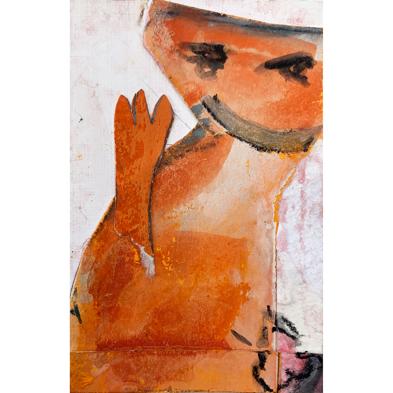 Her paintings combine layering, collage and overpainting. Figures appear between mask, closeness and abstraction, creating poetic spaces in which form and transformation remain in constant tension.