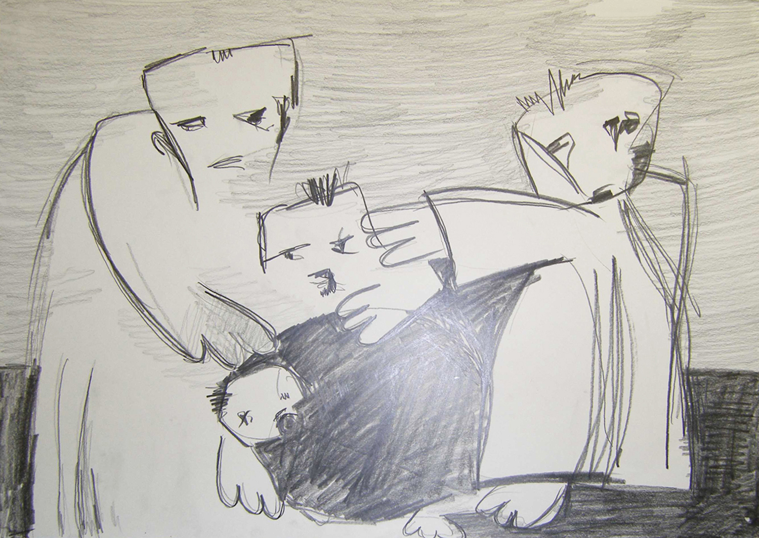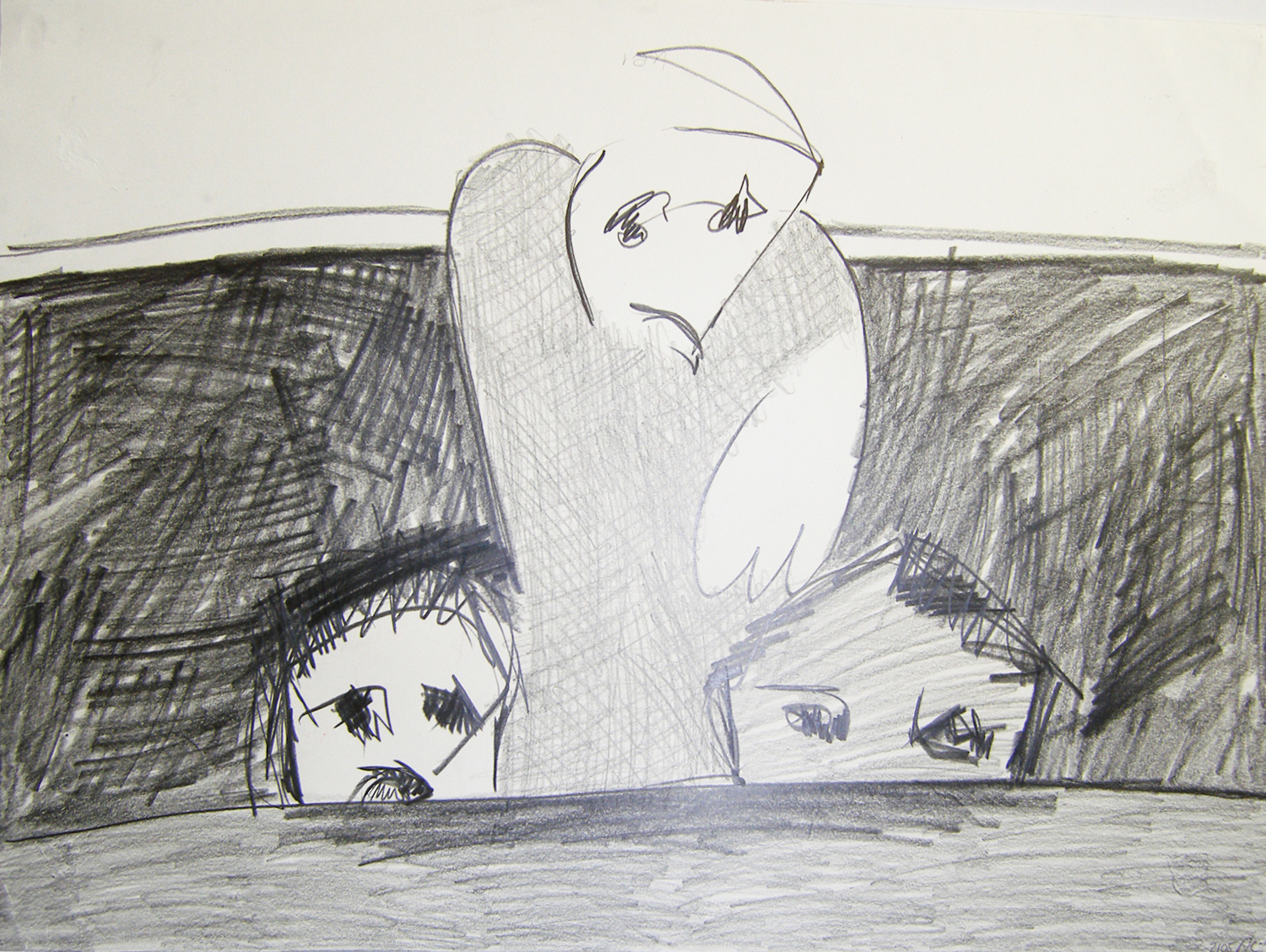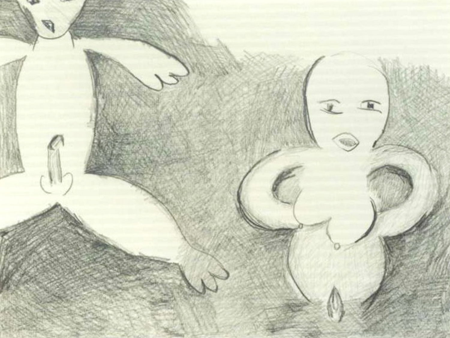 In den Zeichnungen verdichtet sich vieles auf Linie und Geste.